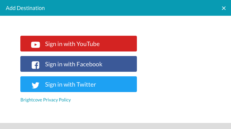 Ein Veröffentlichungsziel ist ein Social-Media-Konto/eine Seite, auf der Sie Video Cloud-Videos veröffentlichen möchten. Bevor Sie mit Brightcove Social Videos auf Social-Media-Konten veröffentlichen können, müssen Sie mindestens ein Ziel erstellen. Ziele können erstellt werden, um Videos auf YouTube, Facebook und Twitter zu veröffentlichen.