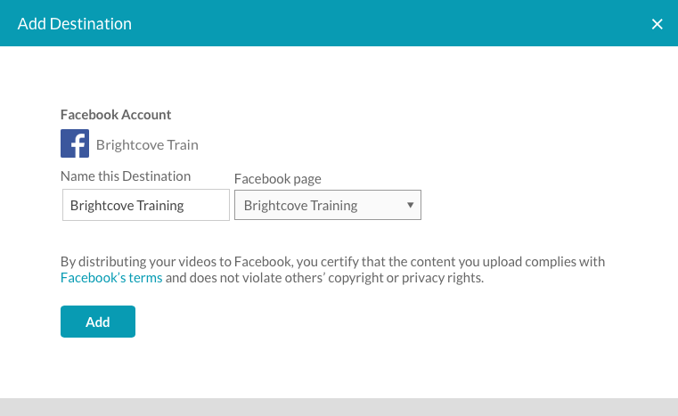 - Geben Sie dem Ziel einen eindeutigen, beschreibenden Namen. Wenn Sie mehrere Facebook-Seiten haben, wählen Sie die Seite aus, mit der Sie die Dropdown-Liste veröffentlichen möchten, und klicken Sie dann auf Hinzufügen.