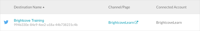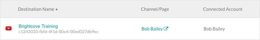Neben dem Zielnamen wird ein Fehlersymbol () angezeigt. Dies kann passieren, wenn die Brightcove-Berechtigungen aus dem Social-Media-Konto entfernt werden oder wenn die beim Erstellen des Ziels verwendeten Anmeldeinformationen nicht mehr gültig sind. So lösen Sie das Problem: