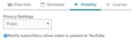 Wenn Sie ein YouTube-Publishing-Ziel erstellen, kann eine der Standardeigenschaften festgelegt werden die Datenschutzeinstellung von YouTube. Standardmäßig gibt es drei Optionen: Öffentlich, Privat und Nicht gelistet. Wenn Videos auf YouTube veröffentlicht werden, wird die Datenschutzeinstellung für alle Videos auf die ausgewählte Einstellung festgelegt.